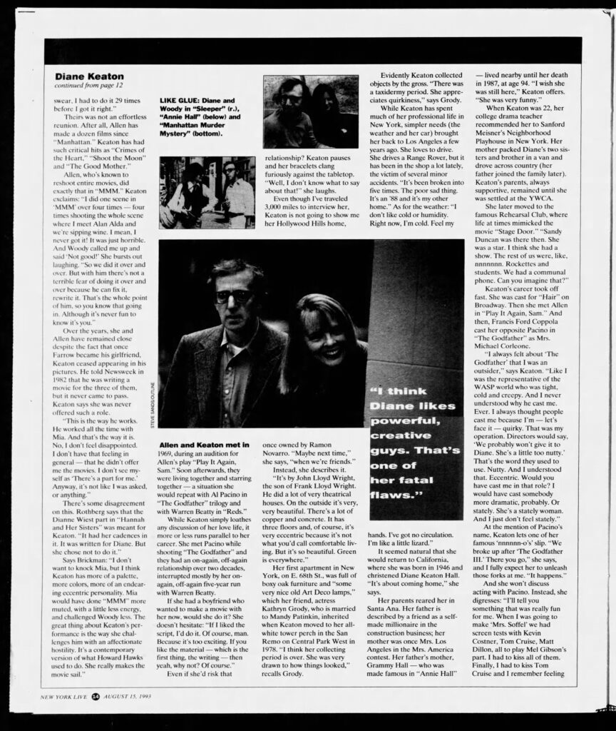Read My 1993 Interview with Diane Keaton That Covered Everything From Her Career Up to That Point: Woody, Adoption, Etc.
