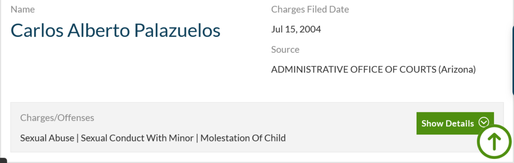 If that’s right, it should be noted there’s a Carlos Palazuelos in Tuscon who’s a sex offender with a lot tickets for driving issues.