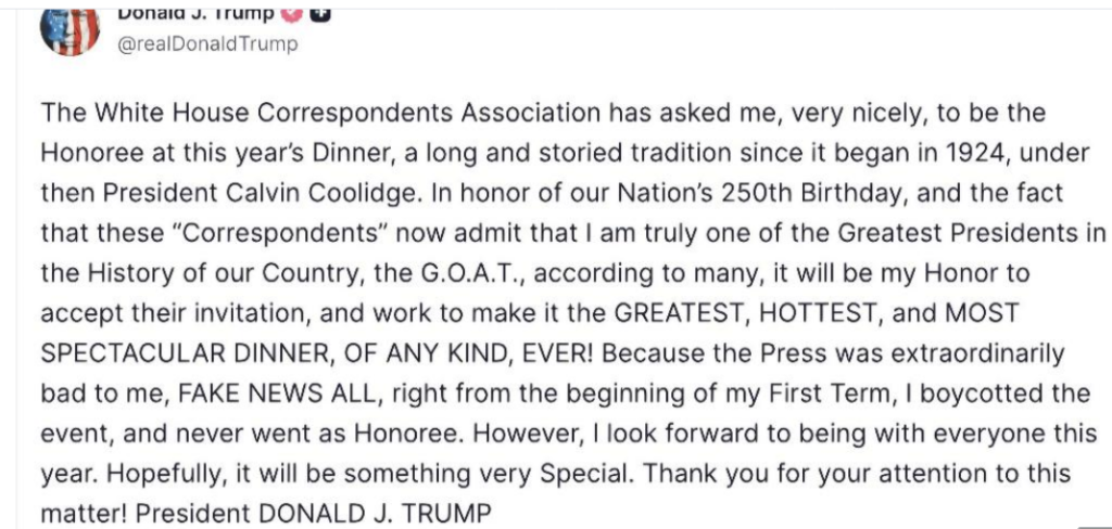 This so embarrassing for the WHCA. They’ve just rolled over and played dead. The tables will be filled with right wing celebrities and press like Fox News, etc. Nicki Minaj, Dennis Quaid, Jon Voight, some country band. But no celebrities that anyone would want to meet, trust me.