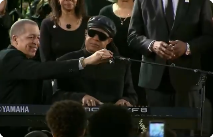 Stevie Wonder performs "As" at the homegoing memorial service for Rev. Jesse Jackson today.