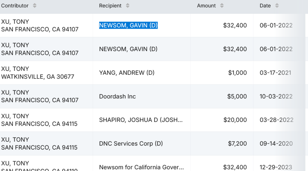 Only Xu has been a HUGE Democratic donor. He’s given money to GAvin Newsom, Joe Biden, Pete Buttiegi.eg Scroll down and see a sampling. So how did he get involved in this mishegos? Has he flipped to MAGA? Doesn’t make sense.