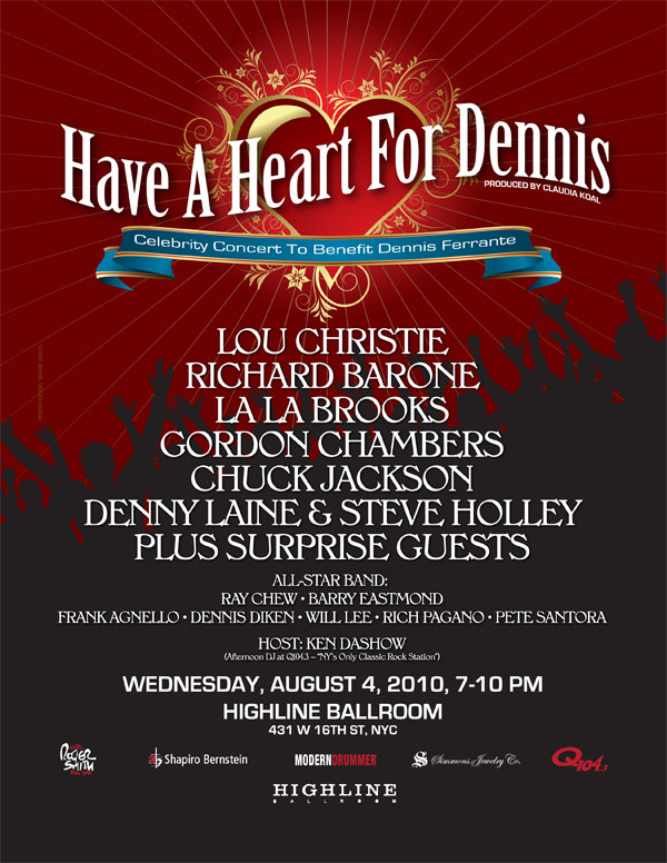 John Lennon‘s legendary music engineer Dennis Ferrante needs a new heart. So his friends and fans gathered at the Highline Ballroom for a show to raise money to help defray his costs. This is where the inner circle of the New York music scene really is like a small town community.