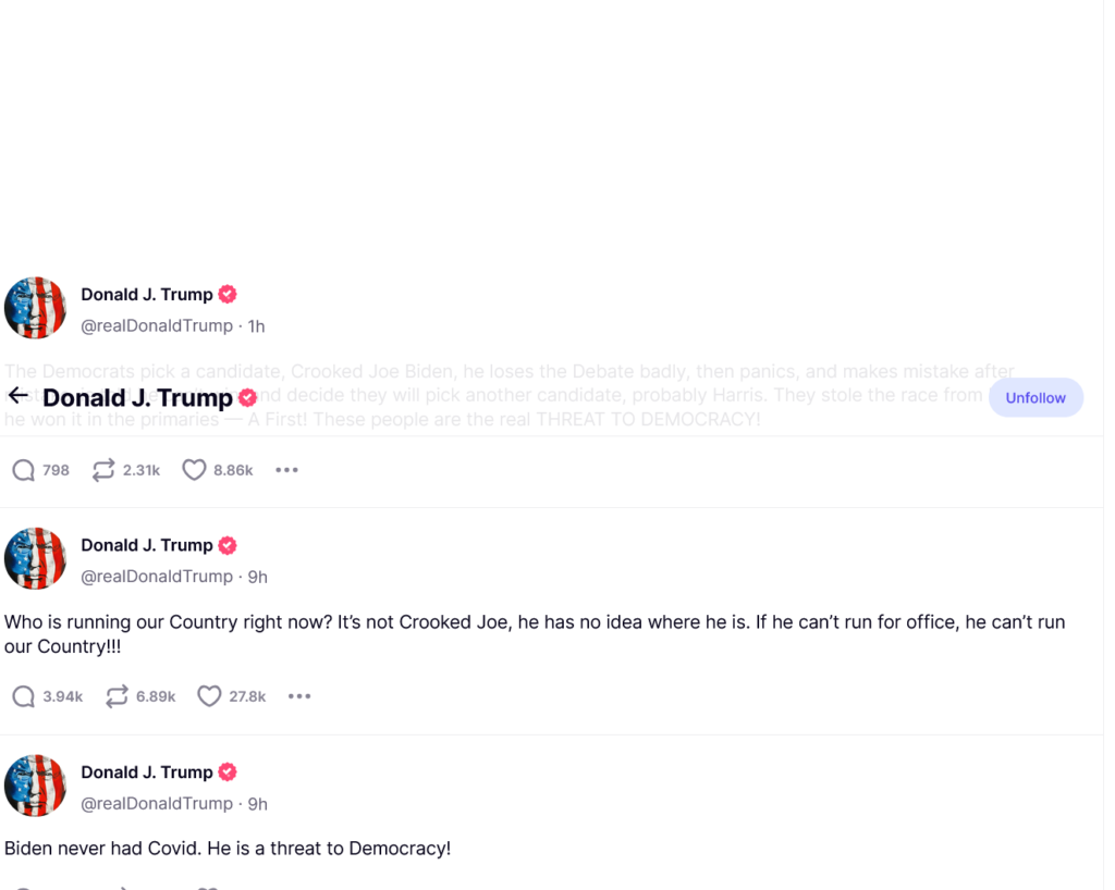 Trump uses his Truth Social as a bludgeon spreading disinformation to his illiterate, uneducated followers. It’s stunning that Trump Media even has a stock price. Everyone should dump it!