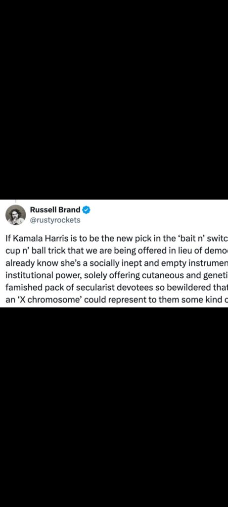 The annoying failed UK comedian is attacking Kamala Harris on social media.
